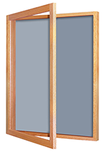 WOOD ENCLOSED CORKBOARD WITH SWING OPEN LOCKING DOOR